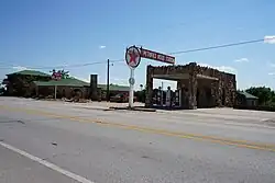 - Petrified Wood Gas Station, 100 S. US Highway 21 (corner of Business 287 and Hale Ave.). It was built in 1927 and then whimsically covered in petrified wood in 1935. This old Texaco station looks like something straight out of the Flintstones.