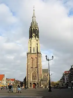 - 🌍 Nieuwe Kerk (New Church), Markt 80, ☏ +31 15 212-3025. Closed on Sundays. Located at Markt, this church was built in 1496. The royal burial chamber is in this church but is not accessible. Prince William of Orange was the first to be buried here, after being shot in 1584. It is possible to climb the 108.75-m tower to get an impressive view of Delft and surroundings. It's the second highest church tower, after the Dom church of Utrecht. You can see both Rotterdam and The Hague. On clear days is it possible to see Leiden and even Amsterdam. It's well worth the effort. €5.5 for the church, €4.5 for the tower and €8.5 for both. A ticket is valid for both New and Old Church, but only the tower in the New Church can be climbed.