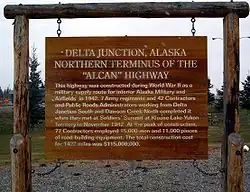 - Alaska Highway - travels northwest from Dawson Creek, British Columbia via Whitehorse, Yukon to its terminus at Delta Junction. The length of the Alaska Highway is 1488-mi / 2395-km.