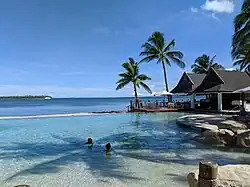 The prime resorts of Denarau are all lined up along the northern and western shoreline.