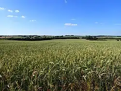 The mountains in Sweden and Norway shield Denmark from most of the stormy weather and freezing winter air. Combined with the mild temperature and high degree of moisture in the winds blowing in from the North Sea it makes the land well suited for agriculture as the seasons are smoothed, and seldom creates droughts or floods. Bornholm is one of the few exceptions to the overall farming friendly terrain, as the depth of the soil is reduced, and bedrock can be seen in multiple sites.