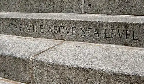 - 🌍 Colorado State Capitol, 200 E Colfax Ave, ☏ +1 303-866-2604, capitol.tours@state.co.us. M-F 7:30AM-5PM. A gorgeous domed building at the southern edge of Downtown. Tours are available, though the big attraction for tourists is standing above the words "One Mile Above Sea Level" engraved into one of the steps out front. Free tours start at the visitor information desk every hour M-F 10AM-3PM. Free.