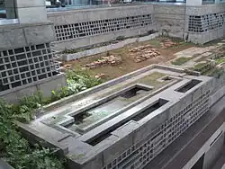 Past security, there's plenty more interesting artwork to look at while you're waiting for your flight. Both train tunnels hold more kinetic pieces: the outbound tunnel (leading away from the terminal) contains a series of propellers embedded in the wall which spin as the train rushes past; a Kinetic Air Light Curtain if you will. Going the other way, the inbound tunnel holds illuminated panels and animated sculptural forms in Deep Time / Deep Space, A Subterranean Journey. Train Call is a series of jingles of railroad standards that play before announcements are made on the train. The main atrium of each of the concourses hold monumental pieces that are worth viewing: Concourse A has Dual Meridian, a massive sculptural work of train tracks, a world map, and abstract Space Age forms towering over the train platform. Concourse B holds Beaded Circle Crossing, a four-legged archway at the center of the concourse that resembles a cross between a Native American tipi and the Eiffel Tower. The train platform at Concourse B has a statue of Jack Swigert, a Denver native who was an astronaut on board Apollo 13 and who successfully maneuvered the crippled ship back to Earth. Lastly, Concourse C has a terraced Garden overlooking the train platform, with ferns, stonework, and cast concrete panels that give the work the appearance of a ruined Mayan temple.