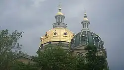 - 🌍 Capitol Building, E 9th and Grand Ave, ☏ +1 515-281-5591. M–F 8AM–4:45PM, Sa 8AM-4PM, closed Su. One of the more popular state capitols to tour, it is easy to spot it with its sparkling 23-karat gold leaf dome and four-surrounding smaller copper-topped domes. Those wishing to see the inside from a bird's eye view will climb 298 steps before reaching the top from their start on the second floor. Historic flags, some hailing from the U.S. Civil War-era, are on display, and tour staff are available during all hours in which the capitol is open to visitors. Don't overlook the State Law Library, one of the most beautiful and ornate libraries in the world. Cafeteria is on the bottom floor. Free.
