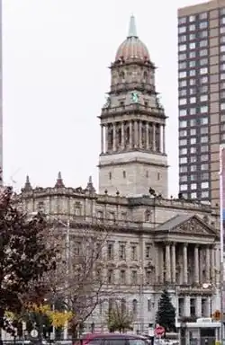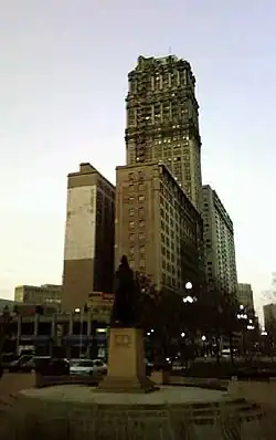- π Cadillac Tower, 65 Cadillac Sq (at Bates). This Beaux Arts skyscraper was the first building outside of New York City and Chicago to have more than 40 floors. Cadillac Tower was placed on the National Register of Historic Places in 2005.