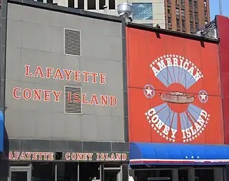 - π Lafayette Coney Island, 118 W Lafayette Blvd, β +1 313 964-8198. Rival of the American Coney Island right next door. Lafayette's dogs feature a spicier chili, more flavourful onions, a smaller, more intimate dining area and emphasis on its Greek heritage. Inexpensive.