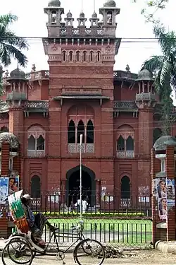 - The University of Dhaka in Dhaka/Central was an epicenter of Bangladesh's struggle for self-determination. It has several notable colonial buildings, including the Curzon Hall, a masterpiece of European-Mughal architecture. The Burdwan House is home to the Bangla Academy. The campus also hosts the Central Shaheed Minar, the national monument dedicated to the Bengali Language Movement; as well as the tomb of the National Poet Kazi Nazrul Islam.