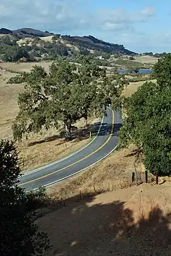 If you're coming down from the north (for example, from Brentwood), a worthwhile option is Vasco Road. Like CA-84, it's popular with commuters, unfortunately, and isn't quite a country lane anymore, but it does go through the northern part of the Diablo Range in a region that otherwise is not too developed. The northern and southern ends of the road go through cities, but the long middle section is still very much in the country. North of Livermore is a turn-off road that leads to π , a popular fishing destination.