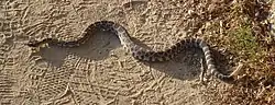 Rattlesnakes are known for being a problem in this region. The best way to avoid rattlesnakes by staying away from the edges of trails, if possible, so you will see the rattlesnake before it is dangerously close to you. (The worst time for rattlesnakes is the summer.) Although not all snakes are dangerous, and there are "good" snakes in the Diablo Range, if you're not a biology expert, it's best to be careful about all snakes in case you come in contact with a rattlesnake. If a rattlesnake is on the trail, and it is near you, step away from it β if the snake is in front of you, go backwards along the trail, if possible, so you are safely away from the snake. Do not assume that, if a snake is a few feet (a meter) away, you are safe. If you keep distance from the snake, chances are that the snake will cross the trail and go into the grass; once he's well into the grass and several feet from you, you can resume along the trail.