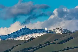 Mount Hamilton isn't so easy to spot from a distance; however, if you're in the San Jose area, look for a mountain with small, white spots on top β those white spots are Lick Observatory, which is near the peak of Mount Hamilton. However, the observatory, while it contains some huge, white telescopes, is quite a long way from San Jose and therefore is not easy to spot at first glance. It's better to view San Jose from the top of Mount Hamilton than to view the mountain from below, as the view is absolutely stunning from the surroundings of the visitor center. CA-130 (Mount Hamilton Road) ascends the mountain from the west, and San Antonio Valley Road approaches it from the east, with the two roads meeting near the observatory.