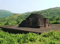 - 🌍 Ratnagiri (Hill of the gem). Ratnagiri is the most spectacular of the Diamond Triangle sites. The complex consists of 3 monasteries, a giant stupa surrounded by hundreds of smaller stupas, a votive stupa complex and a site museum. Monastery 1 is the largest monastery in the complex. It is approached through an intricately curved door frame, leading on to an open courtyard. On the far end of the courtyard is the inner sanctum housing a giant statue of Buddha, in bhumisparsha posture, flanked on either side by statues of Padmapani and Vajrapani. The entire courtyard is decorated with artifacts collected from the excavation. They include several Buddha heads of different size, several statues and floral & geometrical motifs. The courtyard is lined with 24 cells large cells still survive, the size of which perhaps suggests that they were occupied by more than one monk. A set of stairs leads to the upper floor, which has long collapsed. Next to the main monastery lies Monastery 2, much smaller in size it lacks the beauty and grace of its larger counterpart. The inner sanctum of Monastery 2 houses an image of Shakyamuni in a Varada Mudra pose. Monastery 3 is on a small hillock to the north-west, and much smaller again, with only three cells in a row, and a portico. The highest point of the Ratnagiri sight is marked with a giant stupa, surrounded by smaller ones. Some of these smaller (votif) stupas are arranged in circles. The whole hill top contains several structural remains covering a large area. A total of 700+ votif stupas have been unearthed from the side, some of them have been put together in a complex near the entrance. On the southern end of the complex is the Mahakala Temple, dating back to the 15th century. The temple once stood atop the mound covering the giant stupa. It was moved piece by piece to the present location by the ASI between 1997 and 2004. The site museum lies on the north of the complex and houses artifacts recovered from the excavation site. The museum displays 238 artifacts in 4 different galleries.