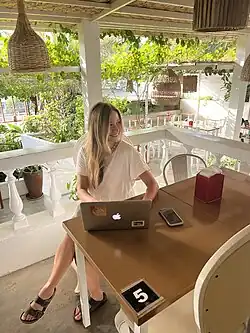 Most nomads will need a good laptop computer, though advising on what to use is beyond the scope of a travel guide. Some people can work on a smartphone or using local facilities, and some use remote desktop applications such as Parsec or VNC. It is a good idea to review your computer and network security together with an expert before setting out. Do you need a VPN for secure communication? Should you encrypt some or all of your disks (including USB sticks) so that private data is not revealed if the device is stolen? Still make sure that your work doesn't get lost if you lose your password. If you are going to work in restaurants and cafés, what do you do to your laptop when visiting the toilet? Locking it to the table helps against theft, but not against somebody exchanging your mouse for one with a backdoor, or rebooting it from their USB stick (many computers have well-known secondary BIOS passwords).