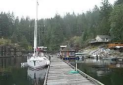 The nearest airport with scheduled flights is in Campbell River. From Campbell River, a taxi or shuttle bus can take you from the airport to the BC Ferries terminal, to water taxis, or to a seaplane base for onward travel.