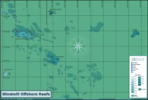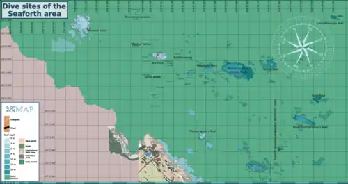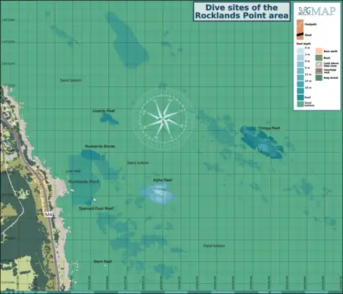 - Reef dive. Boat access only. Maximum depth about 30 m.