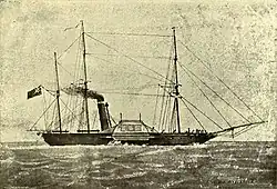 | Propulsion | Sail, plus 2 x Forrester & Co side lever steam engines driving 6m paddle wheels | ||