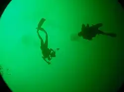 Floating kelp can also be a problem for boat propellers and for divers. It spreads out at the surface and hinders surface swimming. This can be solved by swimming a metre or two below the surface, but that requires proper planning to ensure that enough gas is available for the dive as well as the surface swims. When unavoidable, moving slowly and calmly and pushing it apart as you swim reduces wasted energy. Finning through kelp on your back just gets the fronds caught up around the top of the cylinder, which is a massive drag. A snorkel allows face down surface swimming through this type of kelp. Kelp can be very useful to hold onto in surge, and a large kelp forest absorbs a lot of wave energy.