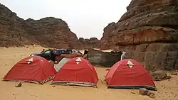 Djanet is the main city and provincial capital of Djanet Province in Saharan Algeria. It is located 412 km (256 mi) south of Illizi. According to the 2008 census, it has a population of 14,655, up from 9,699 in 1998, and an annual population growth rate of 4.3%. It is inhabited by the Kel Ajjer Tuareg people. It is a tourist desert attraction.