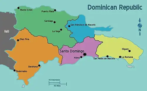 The Dominican Republic (Spanish: República Dominicana) is a Caribbean country that occupies the eastern half of the island of Hispaniola, which it shares with Haiti. Besides white sand beaches and mountain landscapes, the country is home to the oldest European city in the Americas, now part of Santo Domingo. Due to its Hispanic heritage, the Dominican Republic is called the Cradle of the Americas.