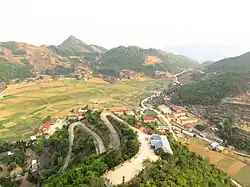 - 🌍 Ma Pi Leng Pass, Pai Lung commune, Meo Vac district, on National Road 4C connecting Dong Van and Meo Vac districts. Ma Pi Leng is a high mountain pass on the famous Sky Path. This is one of the most complex parts of the karst plateau typified by continuous karst pyramids, karst cones, slopes and karst walls. At a length of 7 km and 70-90° steep cliffs, this is the most spectacular landscape on the karst plateau. The canyon below the pass is the deepest of its kind in Vietnam. The pass itself can be reached by motorbike, however, it is a dangerous and narrow concrete path.