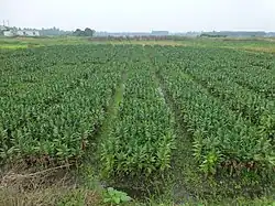 In the west, the island is connected to the mainland by a long causeway/bridge. The north-central part of the island has a new industrial zone, with a steel mill, an oil refinery, pharmaceutical factories, etc.; it even has a railway connection to the mainland (freight only). The rest of the island, including its south shore, is mostly rural, with fishing villages, aquaculture (shrimp) ponds, and fields of sugar cane, corn, and "lucky bamboo" (富贵竹).