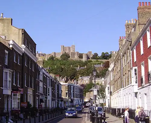 Dover is a major port town in East Kent, facing into the English Channel. At just 21 mi (34 km) from the French port of Calais, it is the closest port to continental Europe on mainland Britain. It is most famous for its Castle, and for its white chalk cliffs which have been celebrated in song.
