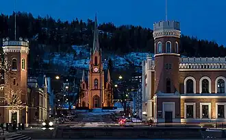 The central square is Bragernes Torg, one of Europe's biggest town squares. It was laid out very wide after the great fire of 1866 to prevent future fires from spreading from one half of the city to the other. It has a small market on most days, and is the focal point for the city's pubs and clubs, with plenty of outdoor drinking in summer.