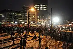 In 1989 protests erupted in Dresden, especially when people who had taken refuge in the West German embassy in Prague were transported to West Germany via Dresden main station (which was sealed off for the occasion). Protests in Dresden never reached the scale they did in Leipzig or East Berlin, but there is a memorial plaque for the 1989 events in Prager Straße among other places.