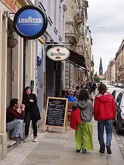 - 🌍 Café Europa, Königsbrücker Straße 68, ☏ +49 351-389-923. This pleasant café and bar is a great choice for a pre-dinner cocktail or late-night snack. The café closes only one hour a day, so stop by any time. In addition to great drinks, the menu also features a full breakfast menu, which young locals and visitors appreciate after a late night on the town.