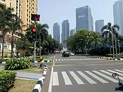 Indonesian traffic lights (lampu lalu lintas) are usually placed overhead at the stop line, like in Europe, and people from countries where the main traffic lights are placed across the intersection (e.g. United States, Canada, Malaysia, Philippines, China) must watch out. Left turns on red (and turns on red between two one-way street) are illegal in Indonesia. Intersections may have an advance stop line for motorcyclists. Traffic lights may have timers indicating the remaining time for each phase. Red lights usually turn red-and-amber phase seconds before turning green, much as in Europe.