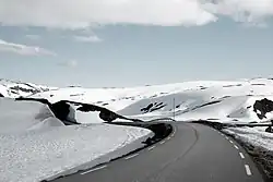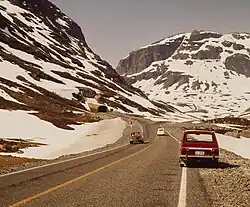 | Fastest and shortest road Oslo–Bergen. | Hardangervidda mountain plateau (often closed in winter) | (none) | Ordinary road, in periods fairly much traffic, especially near Oslo | Very scenic, mountain plateau, steep valleys, fjords views | ||