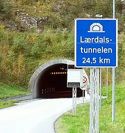 No driving experience in Norway is complete without tunnels. There are thousands of them, and they are fascinating to those unfamiliar with them. Most tunnels are in Western Norway and Nordland county. Road E16 has over 60 tunnels, making up 15% of the entire road. E6 has over 80 tunnels, E39 has over 100 tunnels. The longest is 24 km, but 1–3 km is more common. Length of tunnel is indicated at the entrance and for the longer tunnels kilometers to exit is also indicated inside the tunnel. Each tunnel has a name and drivers should use the name to inform police or fire brigade in emergencies.