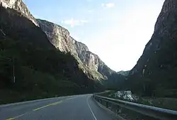 | The "inner" parallel to E39. | Vikafjell (exposed in winter), Gaularfjell (closed in winter) | 2 ferries | Low or moderate traffic. Two lane undivided. Partly narrow or steep. | Scenic drive along iconic fjords, waterfalls and glaciers. Several mountain passes. | ||