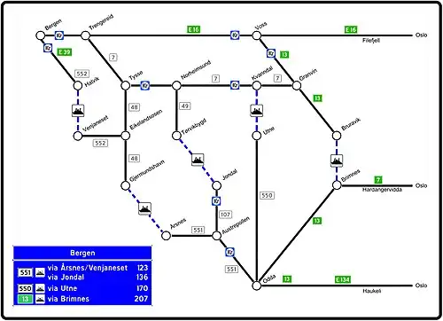 | Bergen–Geiranger | 400 | 7 hours | Ferries | |