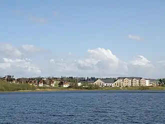 Drumshanbo is a small town in County Leitrim in northwest Ireland: in Irish Droim SeanbhΓ³ means "ridge of the old huts". It's at the south tip of Lough Allen, which almost bisects the county, and is drained by the River Shannon. The area was industrial in the 17th and 18th centuries because of local coal and iron, and became connected to Ireland's waterway network. Those links fell into disrepair in the 19th and 20th centuries but have been restored, so Drumshanbo is now a centre for pleasure boating. Its population in 2022 was 1240.