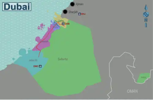 - Neighbouring Sharjah. While dry (no alcohol) and mostly suburban, has a few beaches and museums of interest.