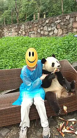 - 🌍 Dujiangyan Panda Base, pandaeducatecenter@163.com. A panda zoo, which is (as of 2016) the only place in the world where you can get your picture taken while holding a giant panda. This is extremely expensive (¥1800 per person) but the money is supposed to go to conservation. Some people remember this experience for the rest of their lives, while others are surprised that it ends so quickly (~15 seconds per person). The pandas are generally 1-2 years old, so they have lost the cuteness of the baby pandas you'll see in some older pictures from other places in China. If you don't want to pay for this, for free you can walk into the panda zoo and see dozens of pandas at a normal zoo distance. They are normally let out of their dens at around 09:30 and proceed to eat breakfast. To arrive, take the 102 bus from just outside the Dujiangyan bus station (or from the Qingcheng Mountain train station, which the 102 passes along its route). This bus runs frequently during the day. The panda base is on the side of the road, about 4 km south of the Qingcheng Mountain train station. Reserve your visit ahead of time by email.