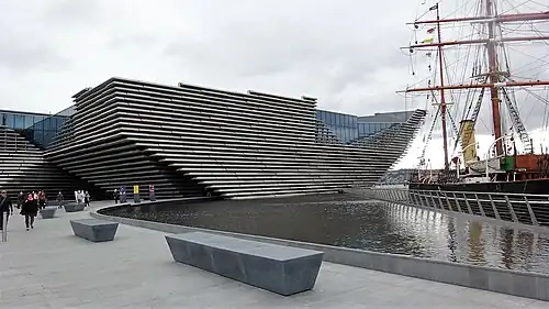 - π Dundee V & A, 1 Riverside Esplanade DD1 4EZ, β +44 1382 411611. Apr-Oct daily, Nov-March W-M 10AM-5PM. The Dundee branch of London's Victoria and Albert Museum, with a focus on design in Scotland. Its waterfront building is a striking modern design with an interior of ship's planking, as if Discovery next door had arrived as an Ikea flat-pack. Free.