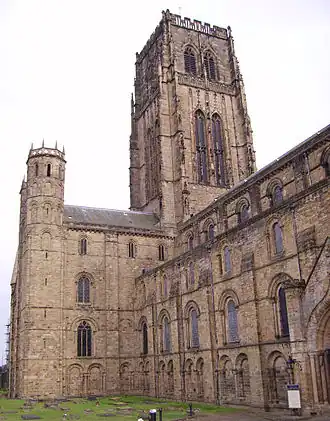 - 🌍 Durham Cathedral, DH1 3EH, ☏ +44 191 338-7178. M-Sa 10AM-4PM, Su noon-4PM. Durham bishopric was founded in 995 AD by monks from Lindisfarne, fleeing Viking raids, and bringing their holy relics with them. Early Norman bishops were of royal status - hence their title "Prince Bishop" - and they built the present cathedral from 1093. It's a magnificent structure, part of a World Heritage Site, with a soaring nave and 66 metre tower. The relics of Saint Cuthbert and the Venerable Bede, and hundreds of ancient artefacts, are on display in the museum (M-Sa 10AM-5PM, Su from 12:30PM, adults £7.50). The northwest (or "Galilee") tower is visited on booked guided tours, adults £7.50, 137 steps and a fair bit of pigeon poo. The cathedral is a working church, please respect services and private prayer, and there may be part-closures at short notice eg for funerals. Donation £5.