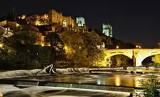 Durham is a city in County Durham in North East England. The name is believed to derive from "Dun-holme", or hill-island, due to its location on a meander on the River Wear. On this peninsula lies the well-preserved old core of the city, with an imposing Norman Cathedral and Castle. The castle is part of University College Durham, while the modern university has expanded south of the river.