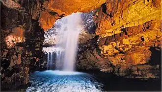 - 🌍 Smoo Cave, ☏ +44 1971 511492. Tours Jun-Aug 10AM-5PM, Apr May & Sep 11AM-4PM. This 83-m cave is a geological oddity, a hybrid. Enter on the shore via the outer chamber, a sea cave created by wave action along a fault in the rock; it once stretched the 600 m length of the sea gorge and you can still make out fragments of the collapsed roof and walls. From here you follow a walkway over the flooded middle chamber, which has a waterfall when in spate. You can come this far free, any day any time, as the sea only reaches the cave on the highest tides. To go further you have to join the tour, which takes a little boat across the pool to access the inner chamber. This is karstic, created by stream water flowing through limestone, and the two caves have combined. No access after rainfall. Adult £15, child £5.