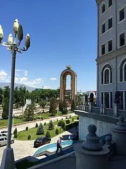 - 🌍 Monument of Amir Ismail Samani (Tajik:Ҳайкали Исмоили Сомонӣ, Russian: Арка и памятник Исмаилу Самани.), Prospekt Aiani (At the south rim of Rudaki Park). A monument to the 10th-century founder of the Samanid dynasty. This statue commemorates the one after whom the currency is named. Apparently, the crown is 10 kg of Tajik gold. Beware: the police at the bottom may ask for money if you take photos, so stand far back and use your zoom. (And don't encourage this bad behaviour.)