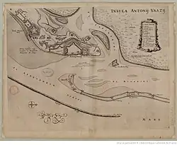 - π Nagapattinam (Fort Vijf Sinnen) was captured from the Portuguese in 1658. It was initially made a part of Dutch Ceylon. After the Portuguese fort was reduced to rubble following a flood in 1660, Vijf Sinnen was built anew atop the rubble. This fort then became the new capital of Dutch Coromandel until it fell to the British in 1781.