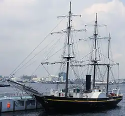 Good relations between the Dutch and the Japanese continued until the Dutch left Nagasaki at the end 1859 following the Black Ships Incident. This shows in the Watermannen (Water men), who were Dutch hydraulic and civic engineers sent to Japan in the 1870s. These men were a part of a larger influx of western knowledge from larger countries like the US, Germany, France, and the United Kingdom, though the Dutch were specifically called in for water management and civic engineering. Some twenty years earlier, the Dutch also provided Japan with its first steam-powered warship, which was built in the Netherlands as Soembing, though it was renamed to KankΕ-maru when taken into Japanese service. Additionally, quite a few words of scientific or western nature have been adapted from the respective Dutch words, and are retained in speech to this day.