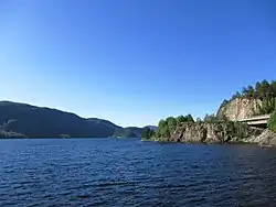 Air transport is in general not an option within East Norway. The main axis to/from Oslo are covered by railway lines and motorways. Overland transport is however restricted by natural barriers. The Oslofjord cuts deep into the land and transport between east and west of the fjord are through the subsea Oslofjord tunnel, by car ferry Horten-Moss or through Oslo. Mjøsa and other big lakes also limit transport perpendicular to the main watercourses. The car ferry across Randsfjorden lake is the only car ferry on a lake. Mountains and uplands are also barriers to overland transport and roads and rails largely runs along the big valleys and rivers. Transport between big inner valleys is more cumbersome and often runs through a few passes or elevated plateaus with steep roads to/from valleys.