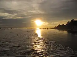Along the Indian Ocean coast, there are various beaches. The most well-known beach town in the region is Pangandaran, with a nature park with a beautiful white sand beach with monkeys, many accommodations, and a busy fish market. About 40 km from Pangandaran is the smaller village of Batu Karas, that is mainly known for its beginner surf break. Between Pangandaran and Batu Karas there is the 'green canyon', a beautiful river among jungle and rocks. Also along the remainder of the coast there are beaches, but these are less touristic.