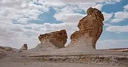 This shows some stone formations in Wadi Dahek. It is a bit like Wadi Rum in white.