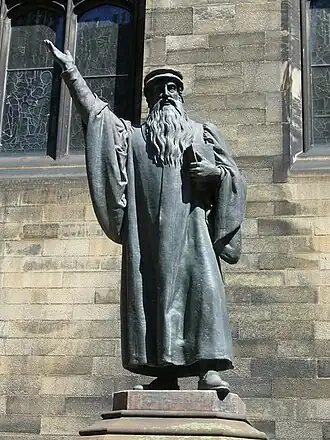 - New College looks down upon the Mound. It was opened in 1846 as the seminary for Free Church ministers and is now part of the University of Edinburgh School of Divinity. You can look in on the courtyard, where the statue of John Knox is launching into another polemic against women: "For their sight in civile regiment, is but blindness: their strength, weakness: their counsel, foolishness: and judgement, phrenesie . . . "