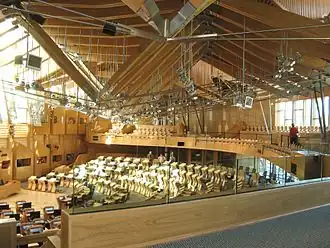- 🌍 Scottish Parliament, EH99 1SP, ☏ +44 131 348-5200, toll-free: 0800 092 7600. M F Sa and public holidays 10AM-5PM, Tu-Th 9AM-6:30PM. A unique building, designed by Spanish Catalan architect Enric Miralles, completed in 2004. It's either a daring showpiece of postmodern architecture or a national embarrassment or a bit of both, time will tell. Parliament meets Tu-Th and you can watch debates from the Public Gallery, ask for tickets at reception. First Minister's Question Time is normally Th noon-12:45PM, and you need to reserve this up to 7 days in advance. Waiting list places may be available from 10AM on the day, otherwise watch from the Overspill Room. On non-business days (M F Sa) you can view the debating chamber from the Public Gallery without tickets. In the lobby area there are often exhibitions. Free.