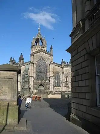 - 🌍 St Giles, High St, EH1 1RE, ☏ +44 131 226-0674. M-F 10AM-6PM, Sa 9AM-5PM, Su 1-3PM. It's often called a Cathedral, but the Church of Scotland brooks no such episcopal entity, and Charles I dubbing it "cathedral" in 1633 was one reason his head was chopped off. Safer to call it "High Kirk", though they're nowadays lenient with first time offenders. The present building is from 14th century with much Victorian Gothic, notably its crowned spire. Highlight is the Chapel of the Order of the Thistle, Scotland's chivalric company of royal knights. Services are M-F at noon and 9:30AM and 11AM on Sunday, with choral music at 6PM. Free.