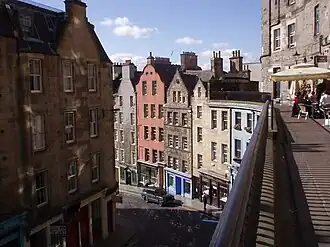 Old Town is the original settlement of Edinburgh. At its core is the Royal Mile, the long street descending east from Castle Crag to Holyrood Palace. This medieval city was cramped for space so it built higher and higher, and stank higher still, hence its nickname of "Auld Reekie". From the 14th century it spread south to Grassmarket and Southside, north to Waverley, and west to Tolcross, and these historic districts are all described on this page.